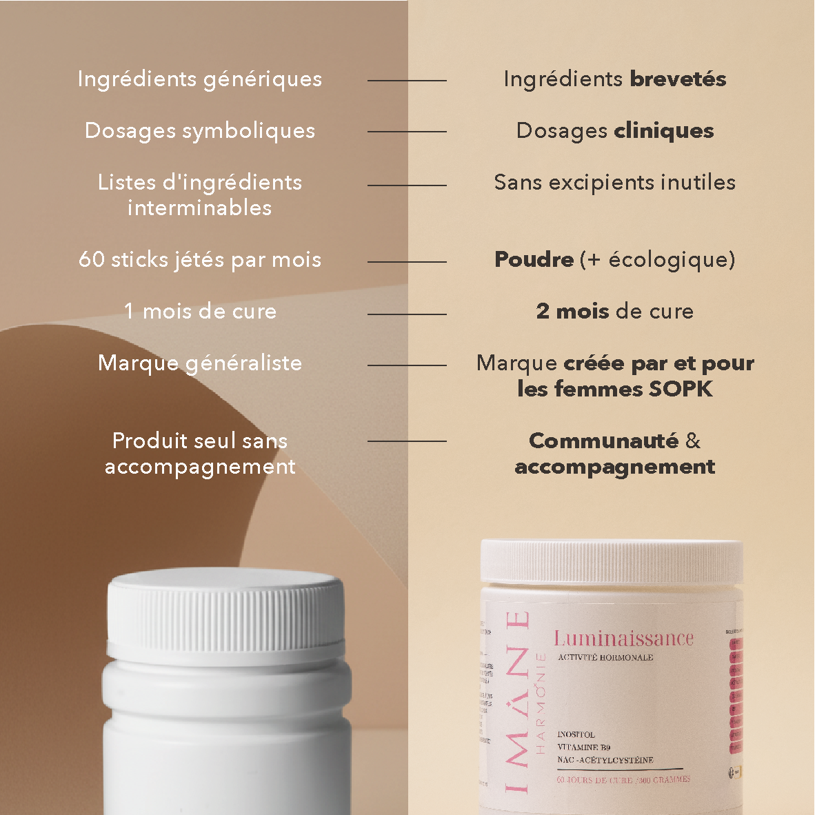 Nos compléments alimentaires pour le SOPK ciblent directement les besoins des femmes atteintes de SOPK. Ils favorisent :