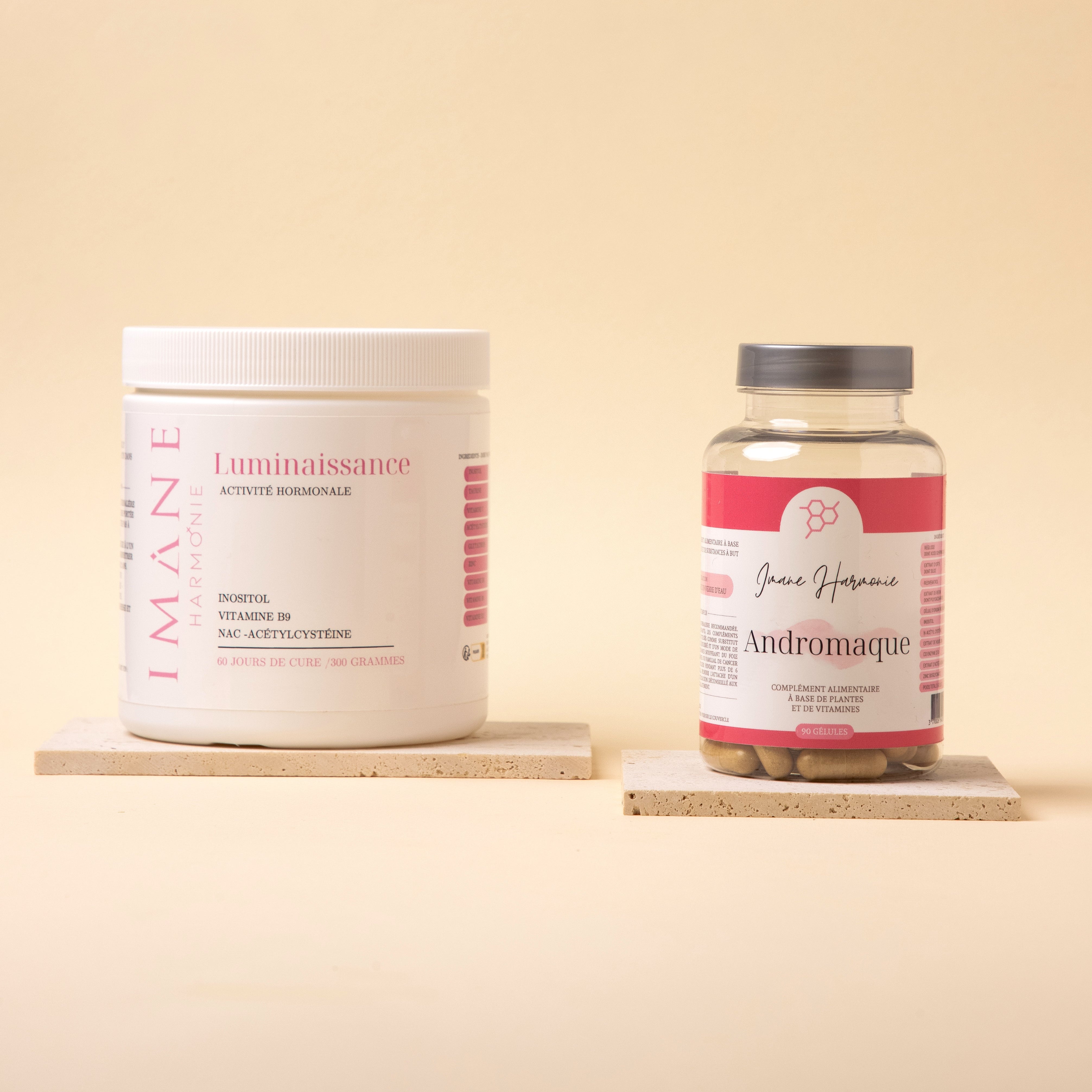 Luminaissance et Andromaque peuvent être commencés à tout moment de votre cycle menstruel pour améliorer l'équilibre hormonal en lien avec le SOPK (Syndrome des Ovaires Polykystiques).