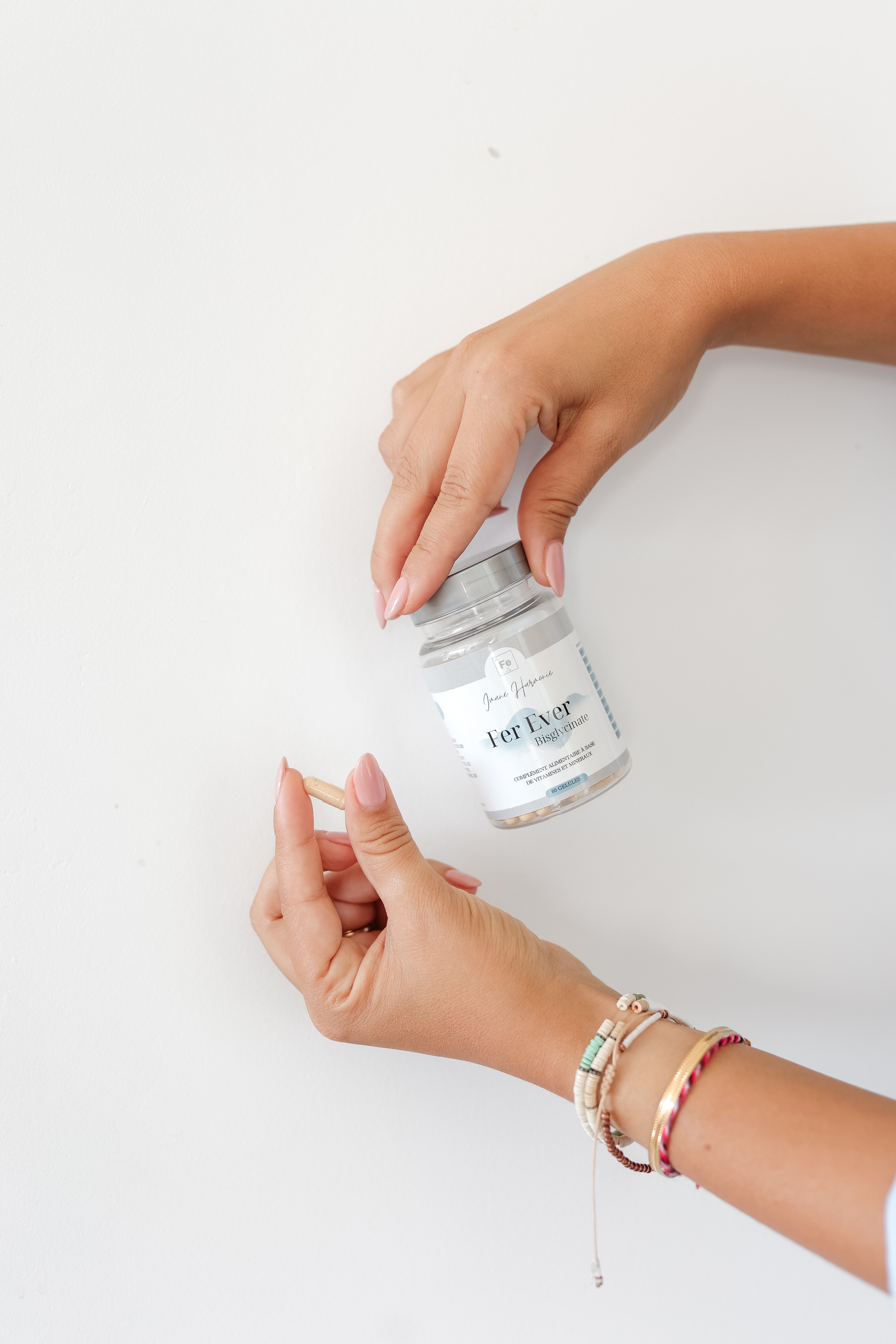 LB acidophilus (10 MRD UFC) - 148mg, Vitamine C - 99mg (123,7% AJR*), Bisglycinate de Fer - 70mg, Fer - 14mg (100% AJR*), Levure de Sélénium - 27,6mg, Sélénium - 55ug (100% AJR*), Vitamine B2 Activée - 1,4mg (100% AJR*), Vitamine B6 Activée - 1,4mg (100% AJR*), Vitamine B9 Activée - 400ug (100% AJR*), Vitamine B12 Activée - 2,5ug (100% AJR*).