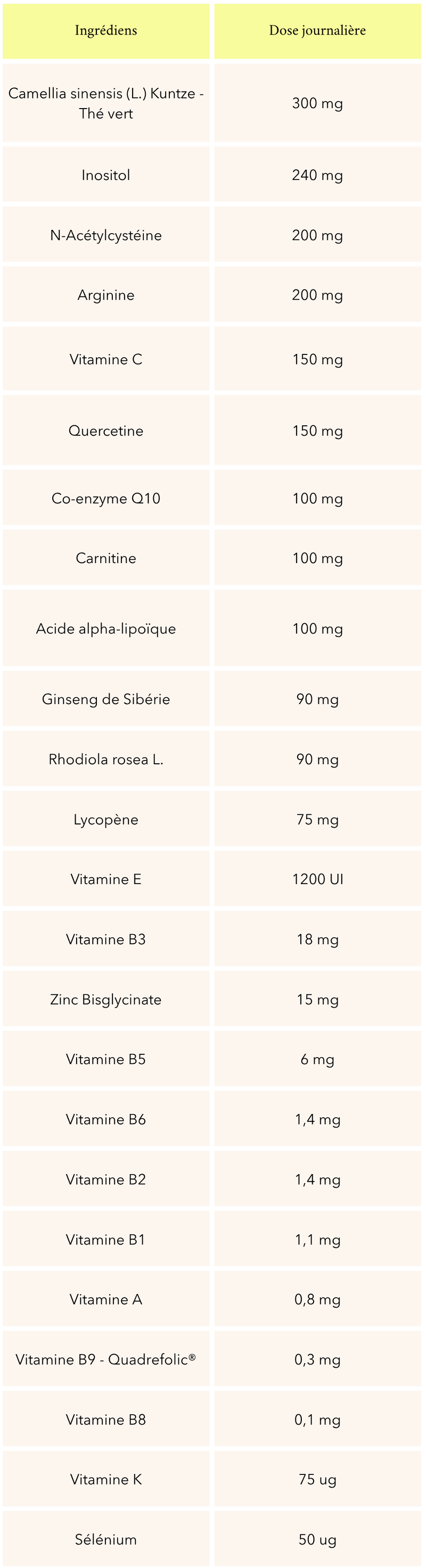 Les compléments alimentaires ne remplacent ni une alimentation équilibrée et variée, ni un mode de vie sain. Respectez l'apport quotidien recommandé.