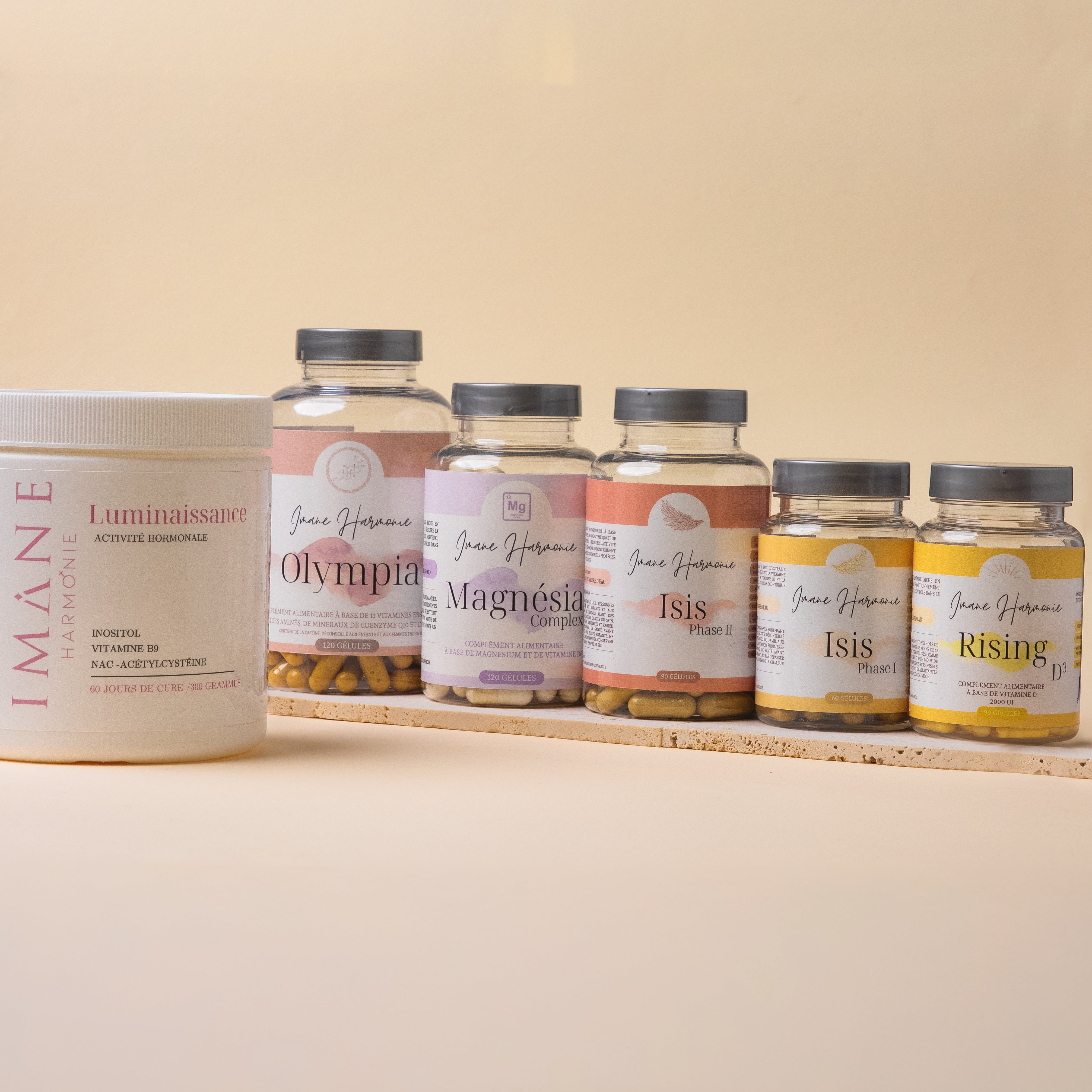 Le Pack Fertilité associe nos produits phares : Olympia, Luminaissance, Rising D3, Isis Phase 1 et 2, ainsi que Magnesia. Pour favoriser la fertilité et la conception de manière naturelle. Conçu pour les femmes en désir d’enfant et celles atteintes du SOPK, il prépare le corps à la grossesse en optimisant l'ovulation et la qualité des ovocytes. Ce soutien naturel et complet maximise vos chances de grossesse de façon efficace et sûre. Le Pack Fertilité est l’allié idéal pour accompagner sereinement votre projet bébé et améliorer vos chances de conception.